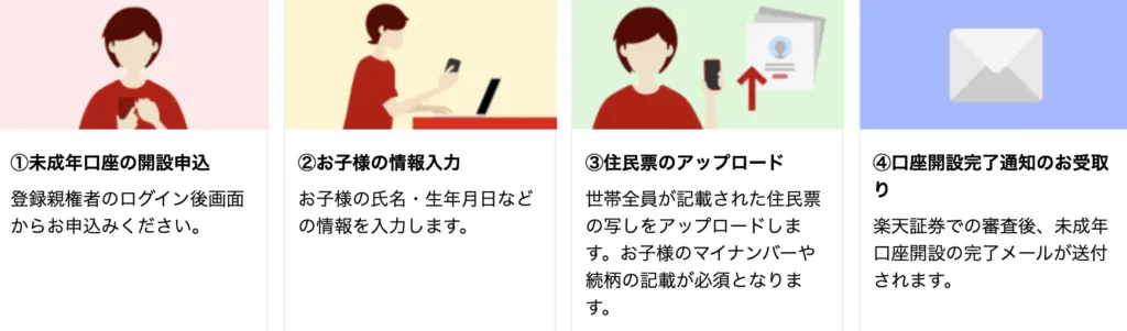 親が楽天口座を持っている場合の未成年口座の開設方法